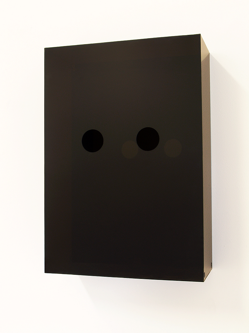 Another self-reflexive auction work: a perspex ‘money box’ already containing 20c pieces the same dimensions as the holes cut in its face. Tributes are payed to the collectible artwork, votives are offered through the hollow eyes of the dedicated fetish-object.