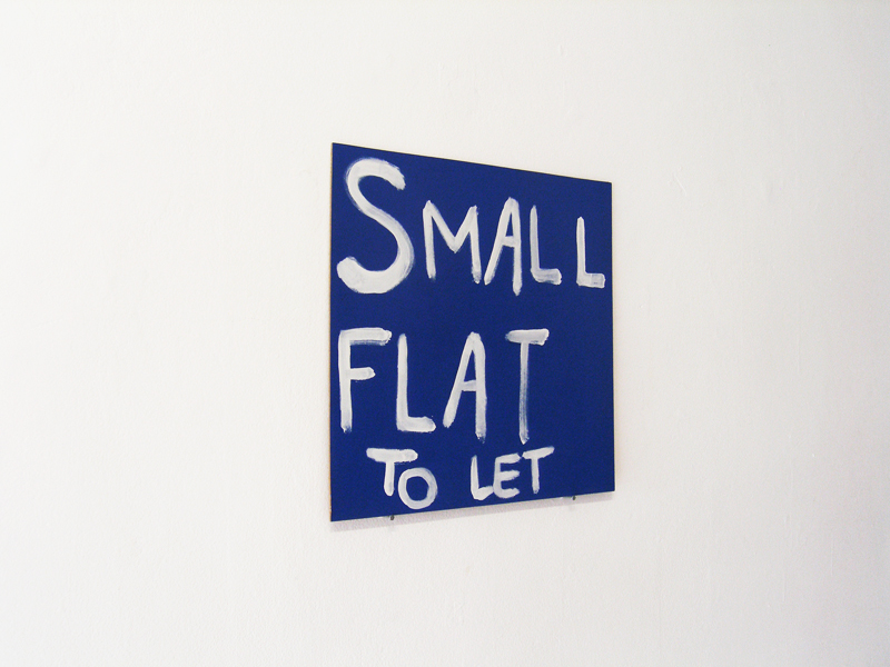 This work was projected and traced from a found sign. It relishes in the formal artlessness of the ad-hoc lettering that re-contextualised here as a text-painting in a fundraiser, suggests that what you see is what you get; every artwork rented and ultimately on its way somewhere else.