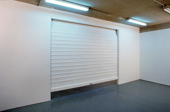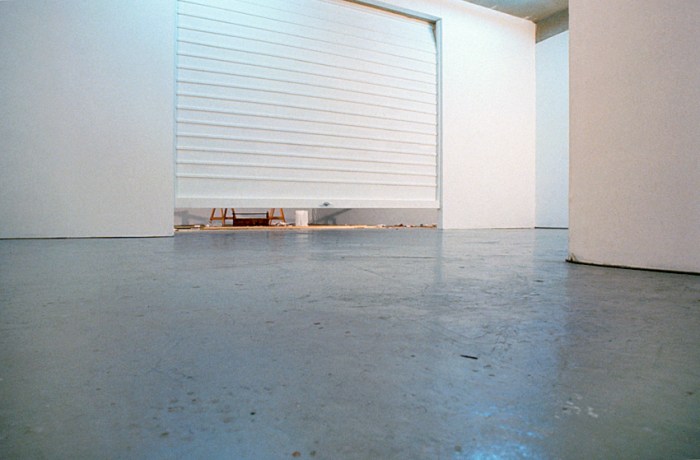 In this work, the social ubiquity of the car in contemporary society is interrogated ironically. The abstract constructed object imitates a car boot. A motor vibrates from within the object at specified intervals. Meanwhile the ‘exhausts’ fixed to the wall locate the car equally as an instrument of death by asphyxiation; one only need think of the manner in which the original and otherwise benign ‘People’s Car’ (the Volkswagen) was also deployed under German Nationalist Socialism to suffocate political ‘undesirables’. The car is a status symbol of compromised origins.