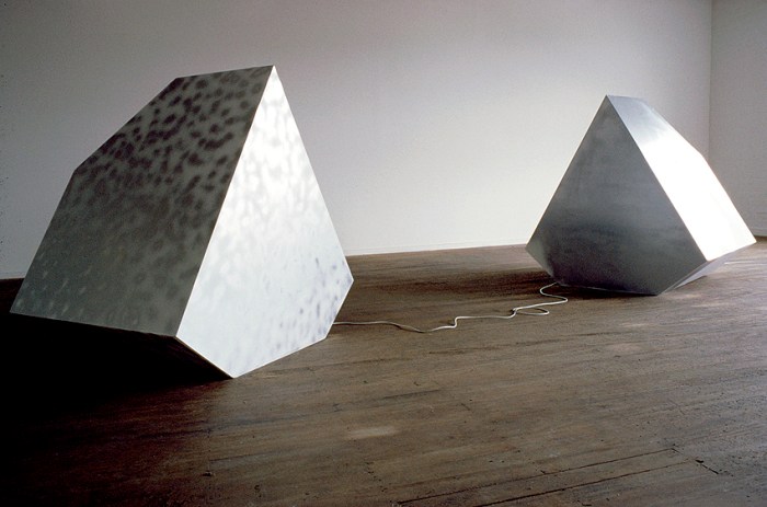 Twin objects face each other across the gallery space. Out of one ‘naive’ folk music issues whilst from the other at intervals, comes an endlessly repeated and bombastic orchestral crescendo. The dialogue thus created simultaneously acts as an implicit critique of commodification; insistence of the same dominates the singularity of difference. As for the sadness alluded to in the title, it is a useful means by which artists are rendered by convention, and via a similar mechanism, necessarily both exceptional and dysfunctional. Robbed of agency, other than a representational one, the artists ‘products’ can safely be left then to industry ‘experts’ to define and disseminate. The physical model for these geodesic solids is Albrecht Durer’s famous ‘Melancholia’ etching, an early precursor of an image of the artist beset by the uniqueness of their subjective position that became so desirable for later corporate, bureaucratic societies like our own.