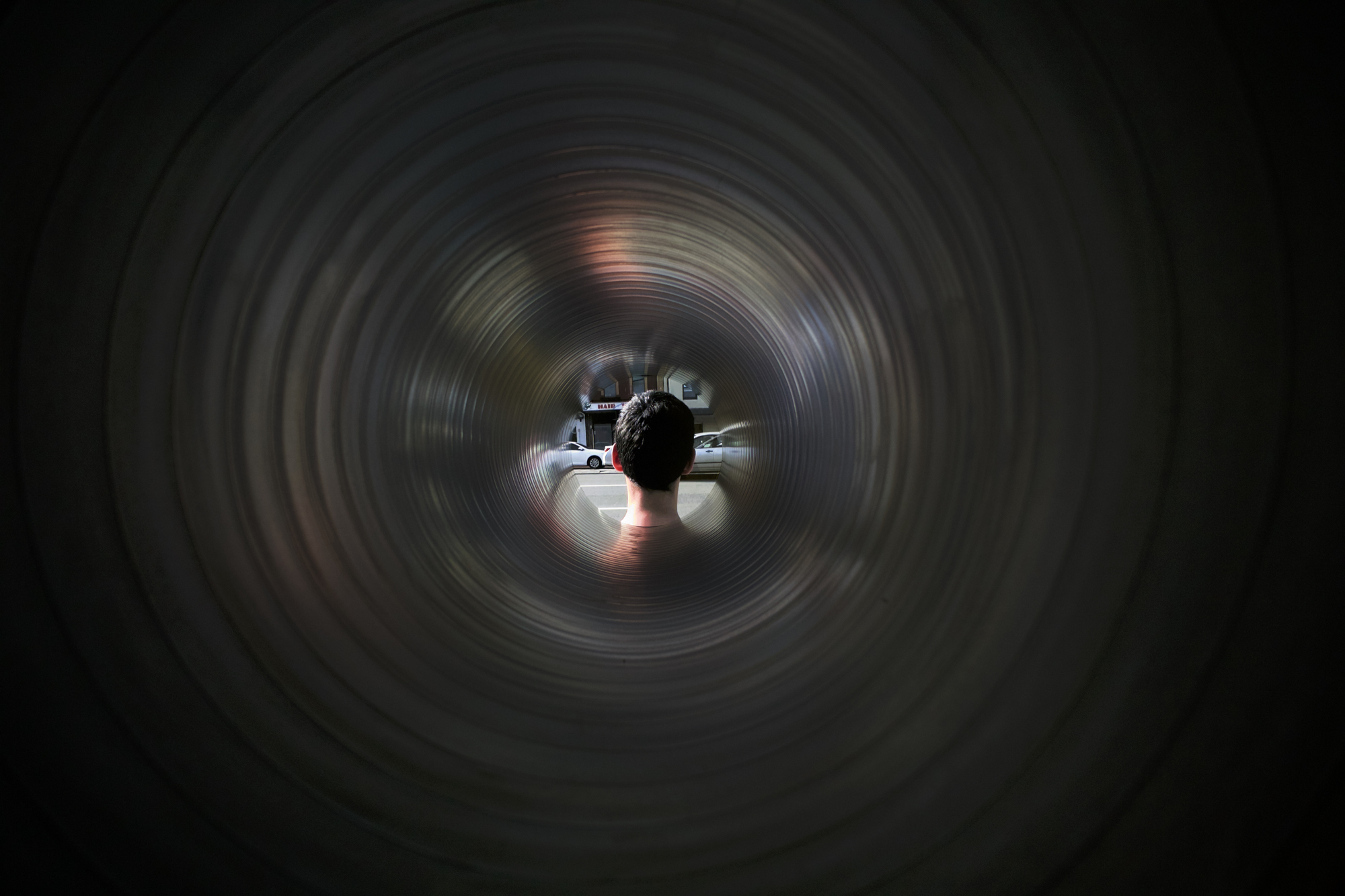 (Aluminium air-conditioning duct, monitor, digital video loop)