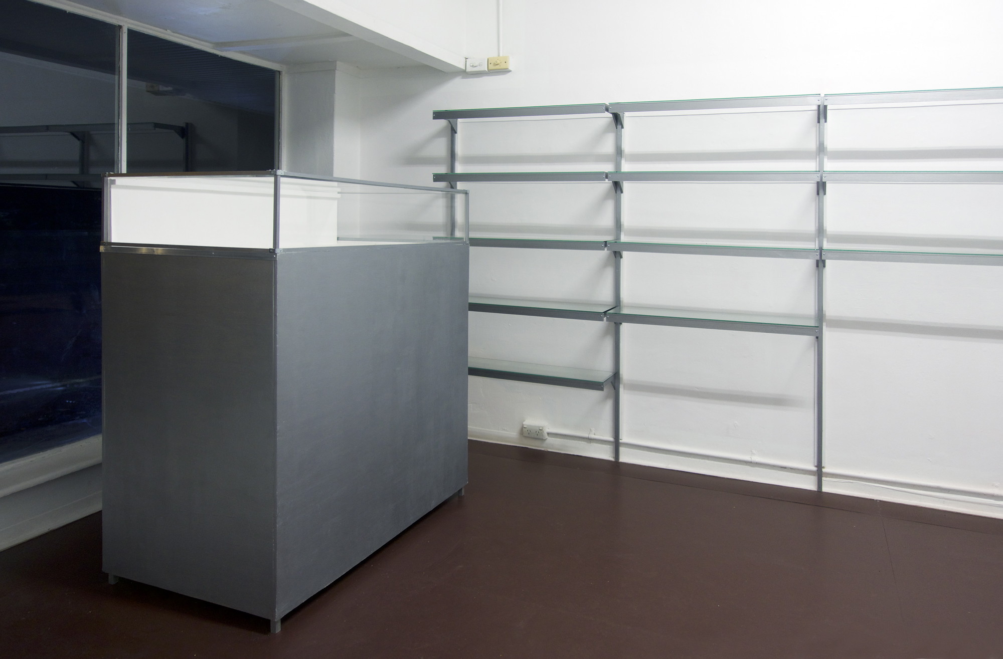 The empty shop physically proximate to KNULP on which this installation is based that also incidentally happened to formally mimic minimalist sculpture, physically represents a template for evermore unavailability.