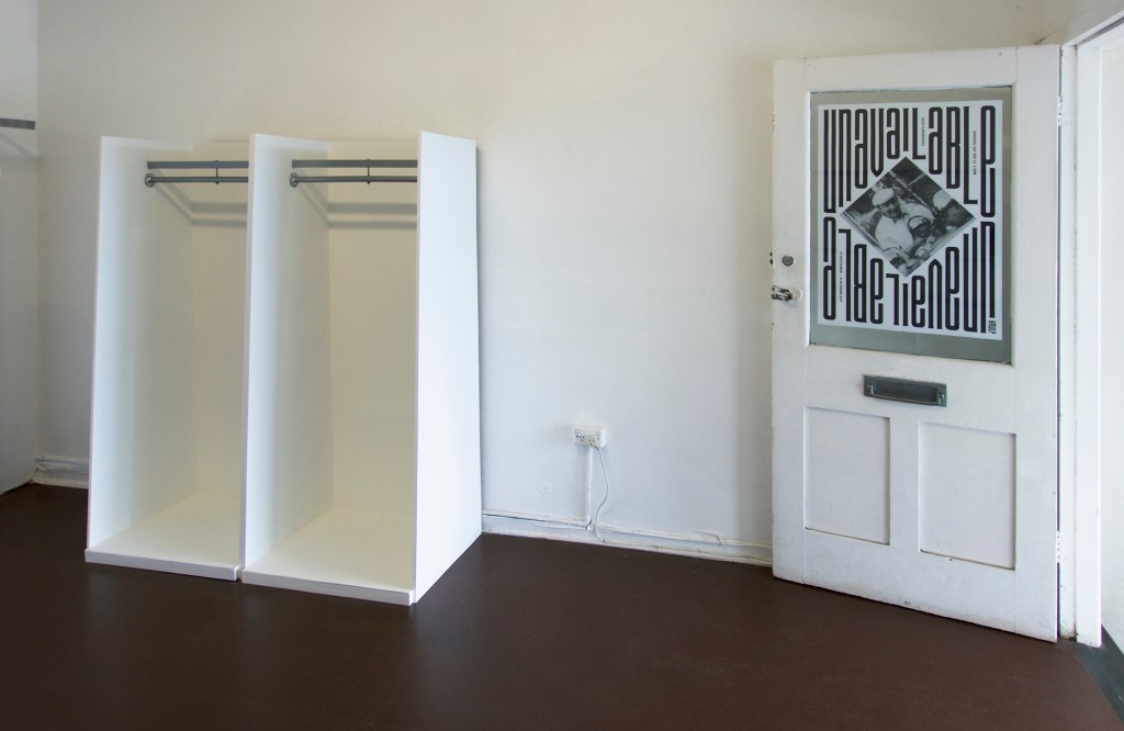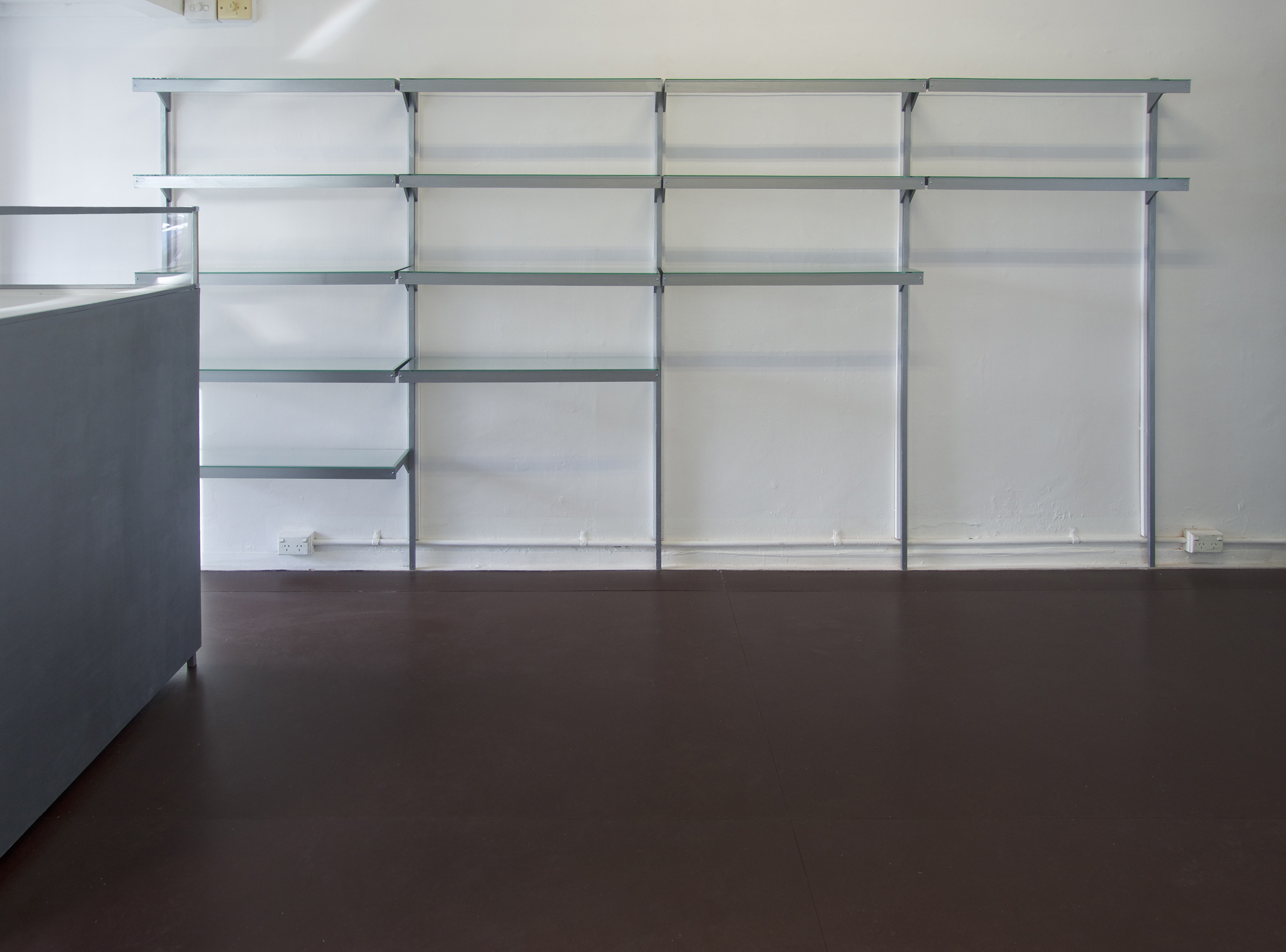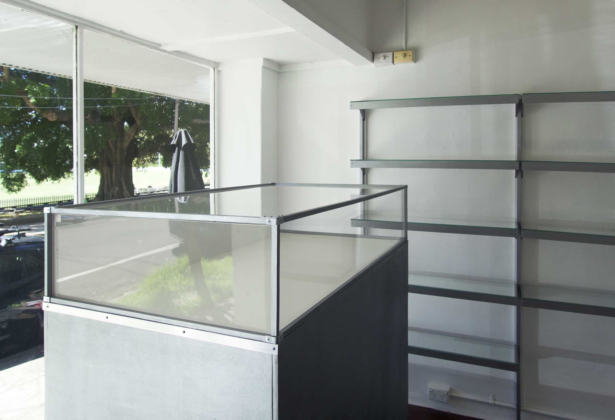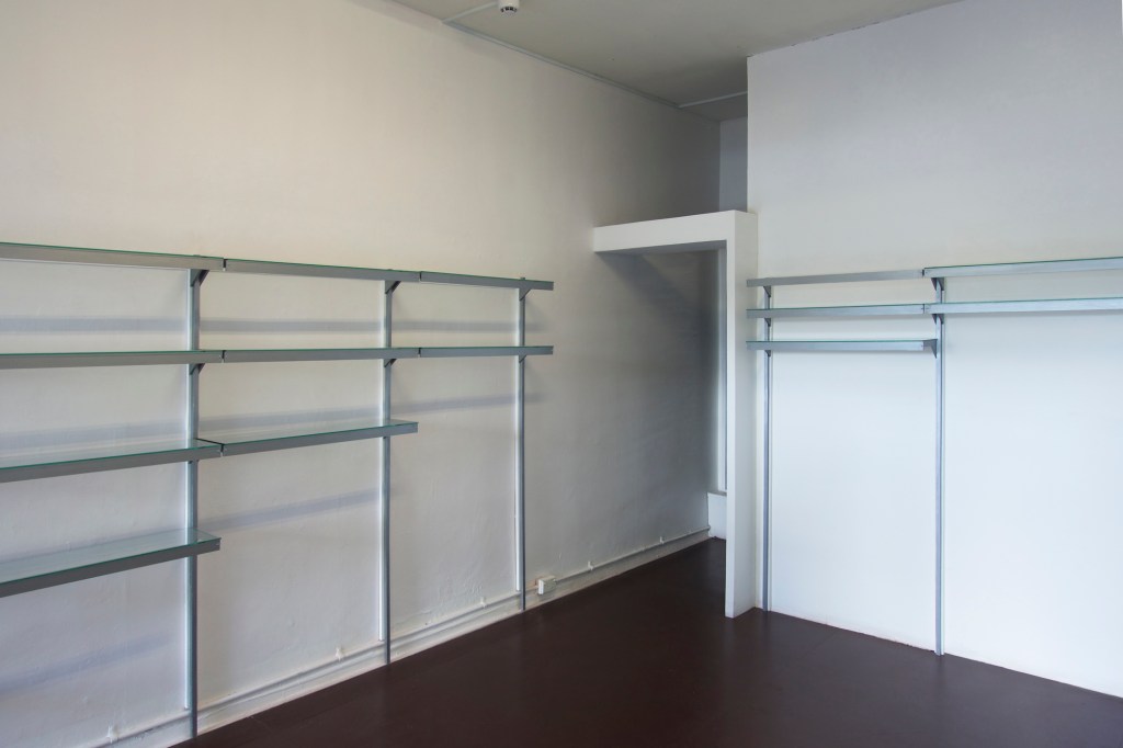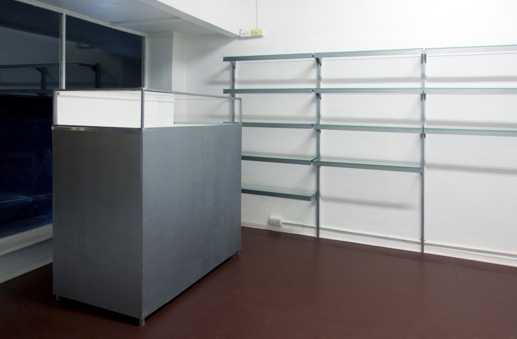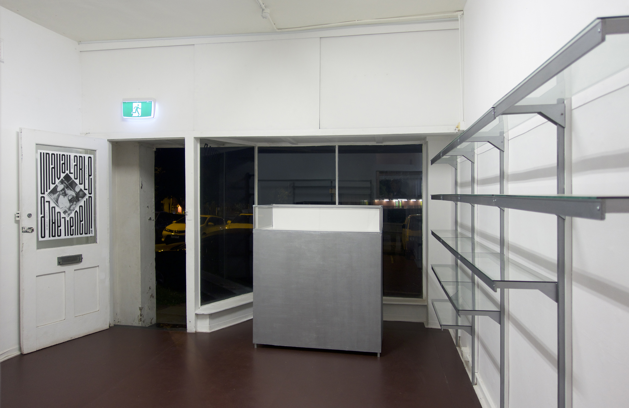 In a shop setting, it is ‘material’ that is normally for sale whether in the form of raw materials or consumer products (including art). In this instance, the material simply comprised the supporting structures for what was otherwise absent from the fictional shop context, the consumables that ‘should’ have been there. The handmade facsimile structures – shelves, booths, display cabinet – were simulacra of the functional scaffolding typically used to display commodities. These were the only ‘objects’ viewable.