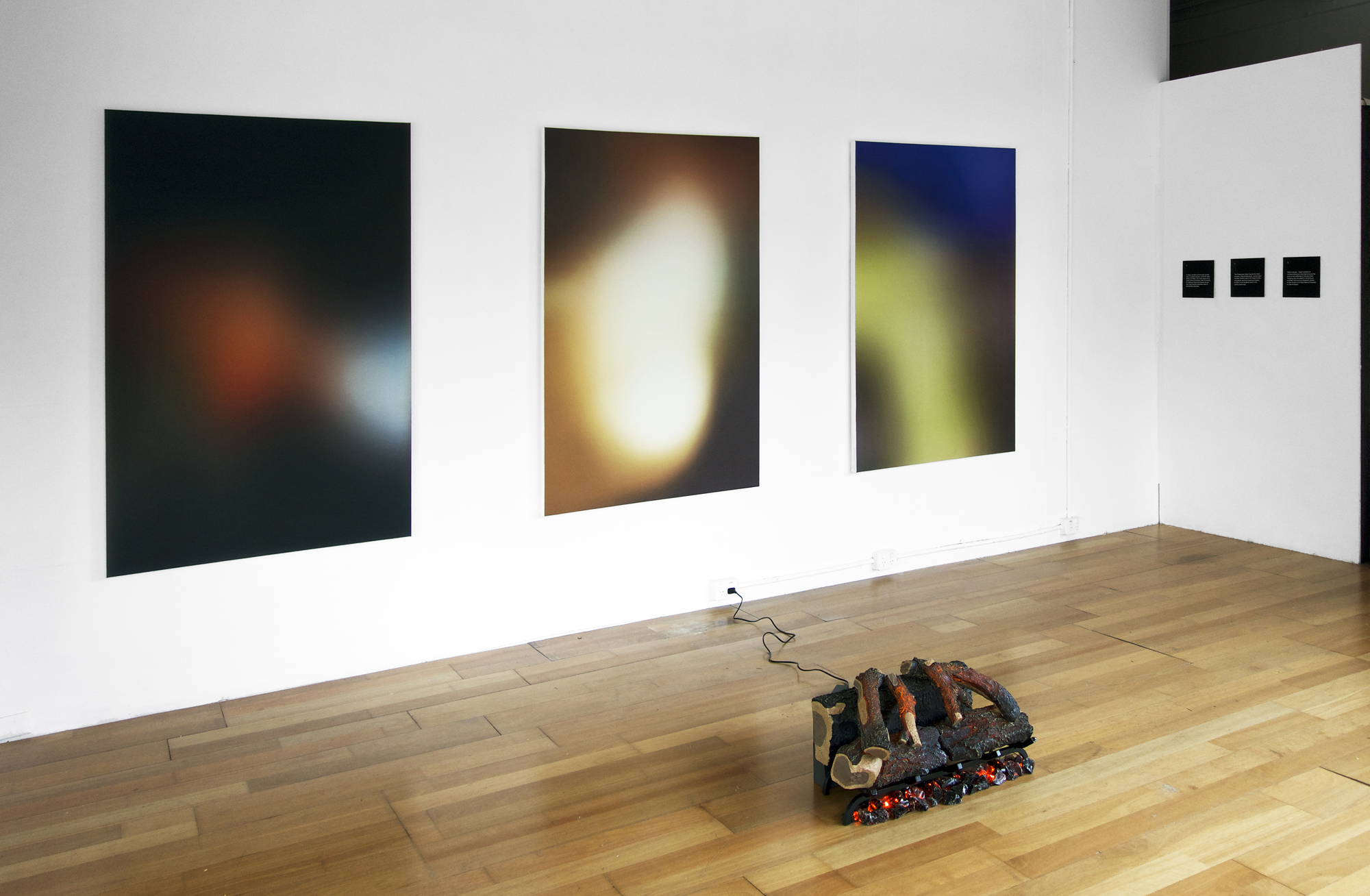 (Digital prints with resin, stretched, paper, foam-core, electric fire)