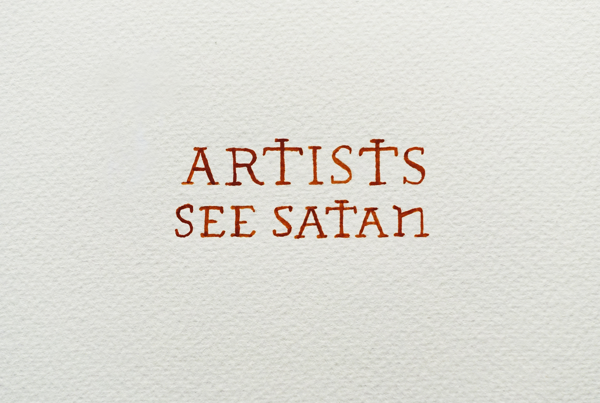 This exhibition consisted of a series of ten book titles removed from their original contexts. Each title was chosen because of its uncanny or humorous connotations once removed from its wider context. Considered collectively these titles suggested a type of quasi-Dadaist poetry whose combined effect hinted at alternative even pataphysical, readings. Graphically the original layout of each book title was retained although each was rendered in watercolour as a ‘painting’. Furthermore these works referenced the importance of text in contemporary art and the work of artists as diverse as Ed Ruscha and Marcel Broodthaers. Accompanying these text works were figurative paintings by Jelena Telecki. These all responded to the book titles. Together the appropriated titles and their figurative interpretations, established an open dialogue of fairly infinite suggestability. ‘Objects in the Mirror…’ (may be closer than they appear – as the warning goes) spoke of how texts and images continually interpolate one another while remaining fundamentally differentiated. The juxtaposition of text and image in this instance may have been considered a type of improvisation drawing out the latent possibilities concealed behind the most ordinary words and the words that underlie the most stubbornly elusive representations.